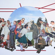 I repeatedly re-contextualized characters from Norman Rockwell's illustrations, placing them in Ikea interiors, how-to-paint landscapes, and vintage posters issued by the Department of Agriculture. These collages employ a fundamental principle of physical theater: narrative is created from a perceived relationship between a character's physically held tension or visible desire and their environment.